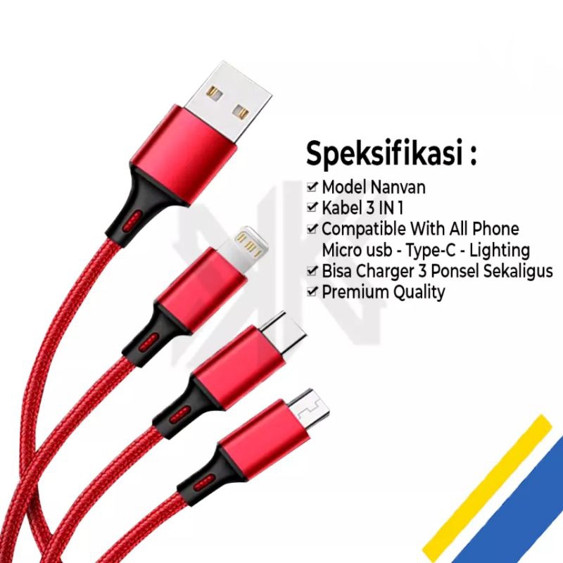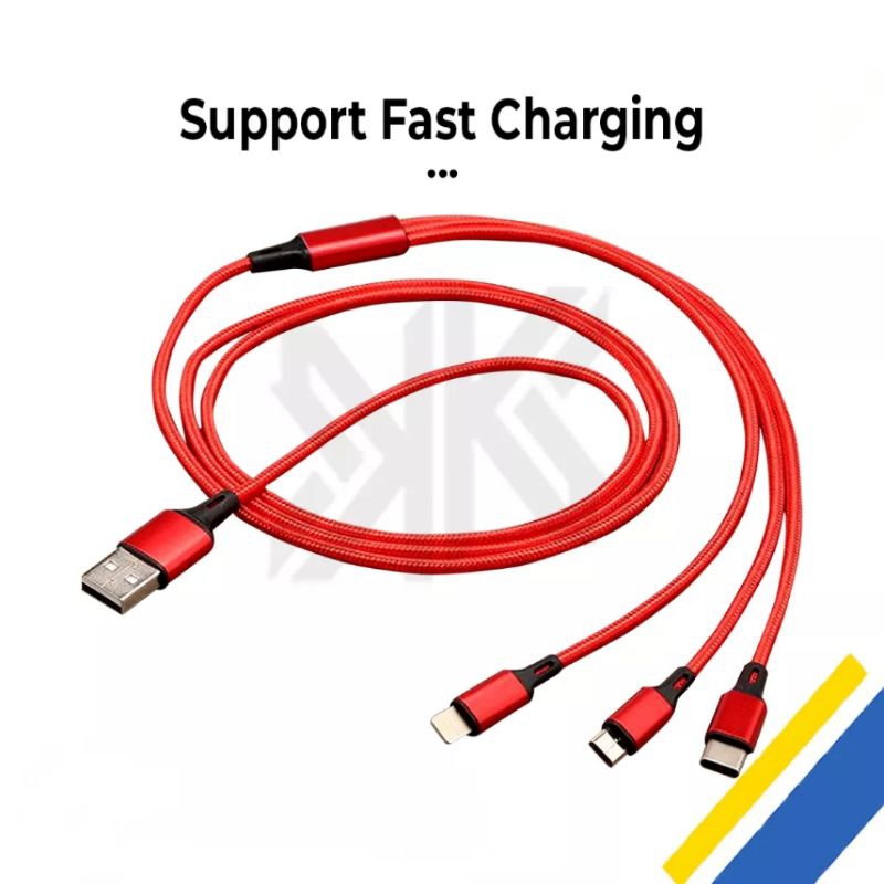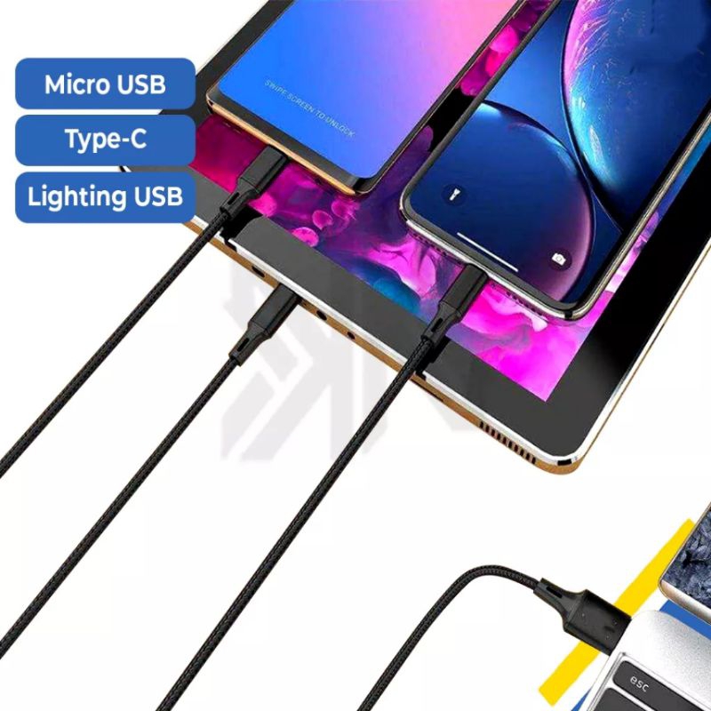 Kabel Data Cable Charger 3 in 1 Micro USB Type C Lightning