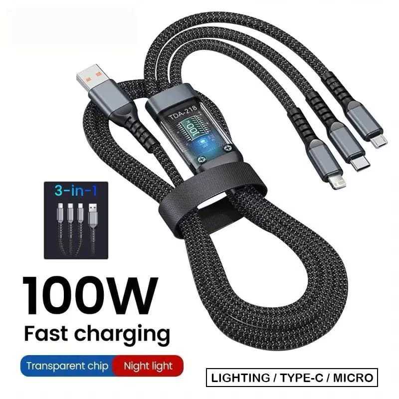 Kabel Data Charger 3 in 1 Fast Charging | Kabel Cas Casan 3in1 120 Watt | 120W -6A Type Tipe C / Micro USB / Iphone Lightning iOS Android Cable Data Fast Charging Garansi Original Bahan Silikon Tebal Gaming Viral