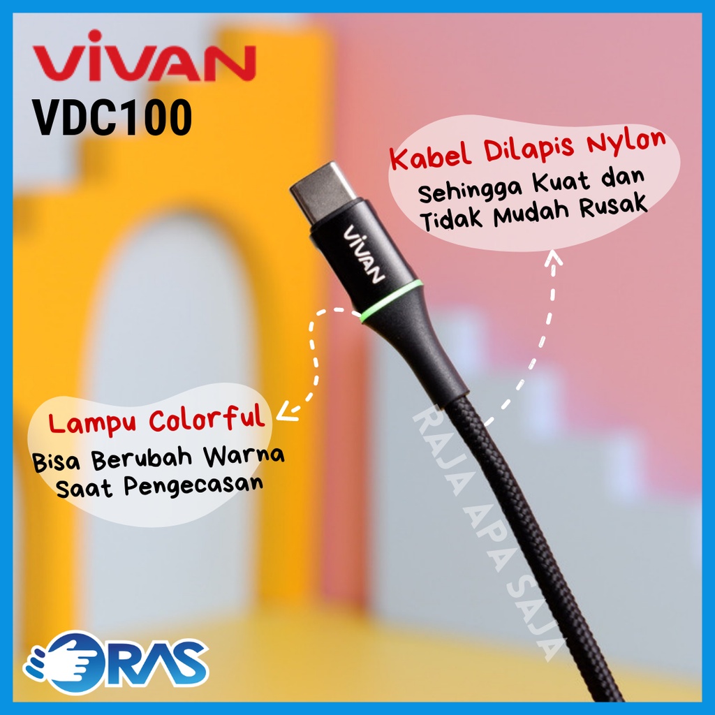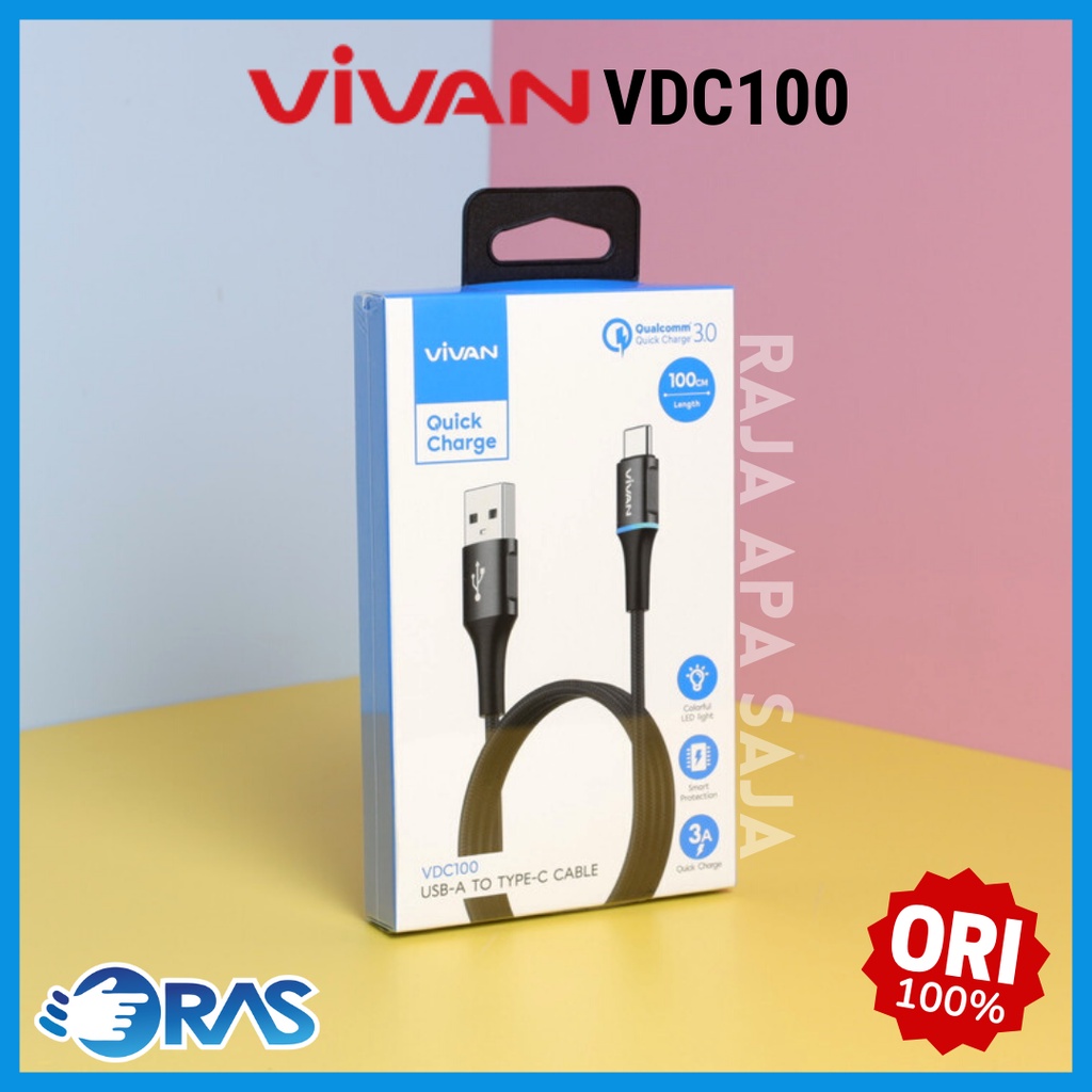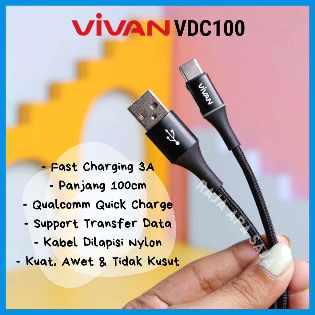 Kabel Data Charger Vivan Type C Fast Charging 3A - Kabel Casan Carger Carjer Tepsi Taepsi Tipe C VDC100