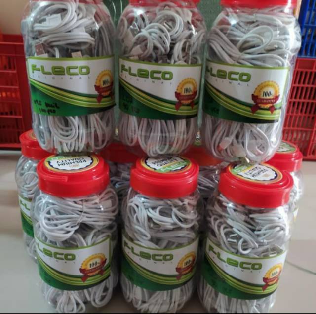 Kabel Data Fleco Putih Bulat 1 m Kabel Data Bulat Putih Toples isi 40 pcs