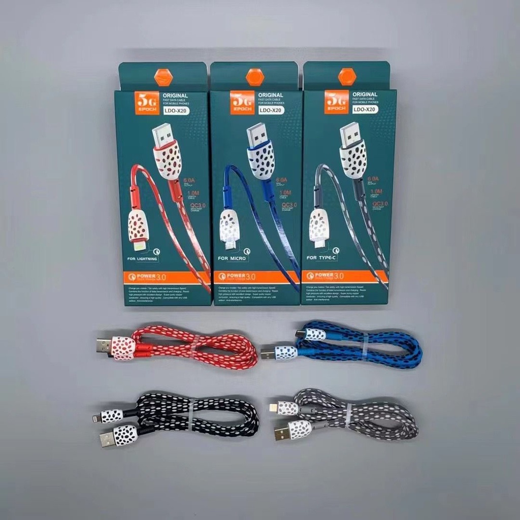Kabel Data LDO X20 100 CM Micro B Type C Lightning IOS Super Fast Charging LDO-X20 Cable Data Fast Chager 1 Meter