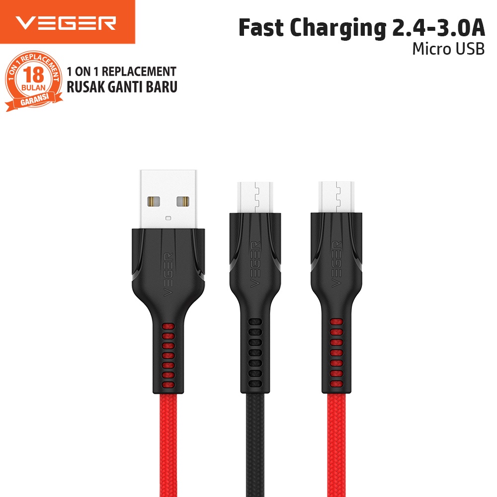 Kabel Data Cable Veger VP14 Micro USB Fast Charging 3.0A Original 1 Meter