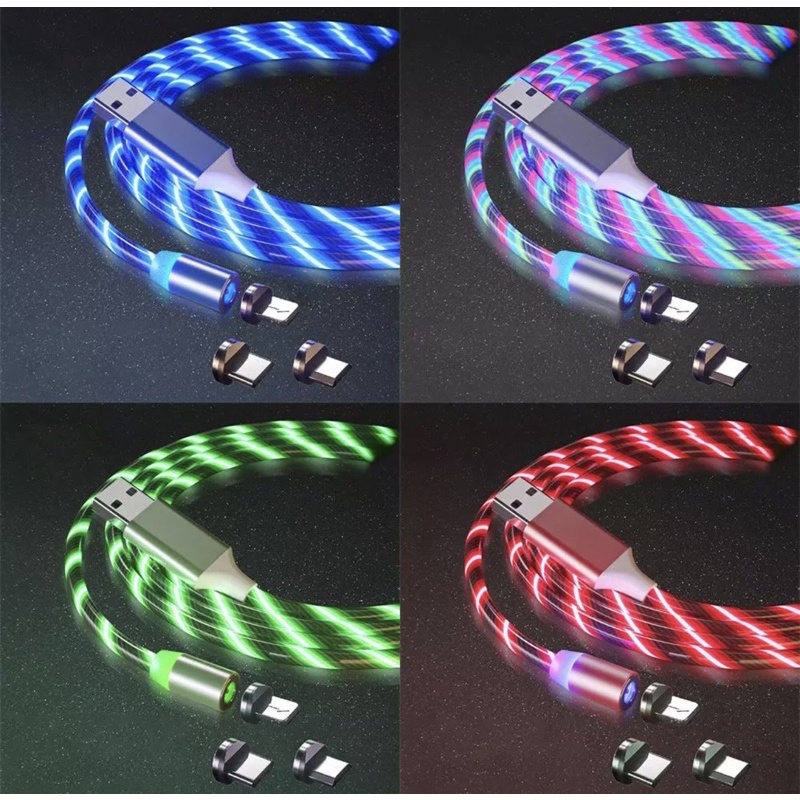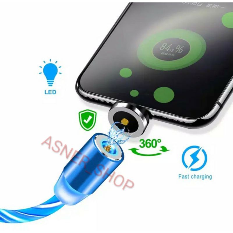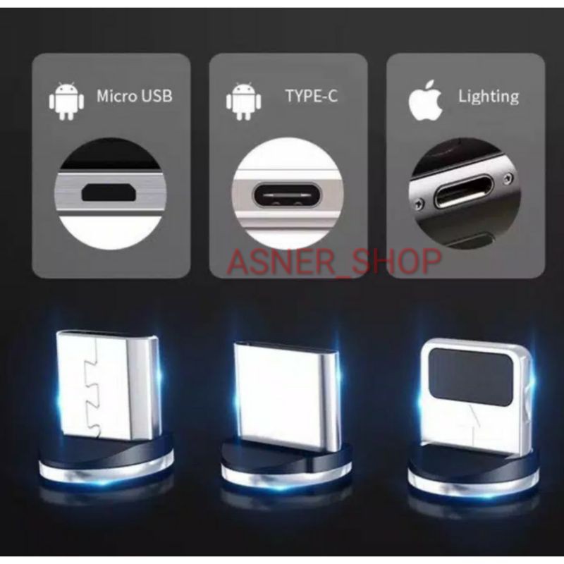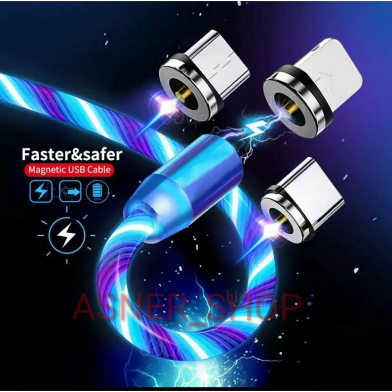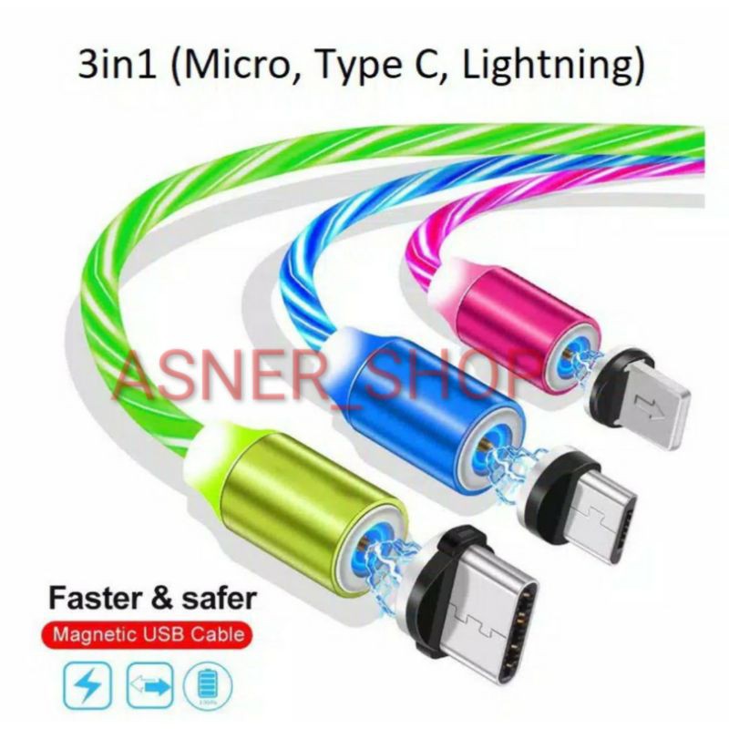 Kabel Data Magnet 3 in1 Micro Lampu led Lightning Tipe C usb cable Magnetic all tipe