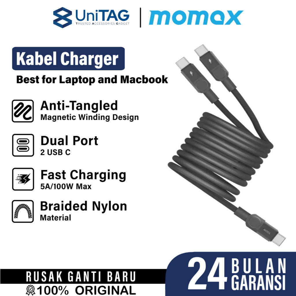 Kabel Data Magnet Fast Charging for Samsung iPhone 16 15 Pro Max Plus MOMAX Mag Link USB C to Type C PD 100W 60W 5A 3A QC 3.0 Magnetic Cable by UniTAG