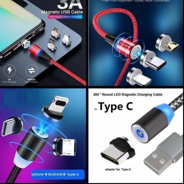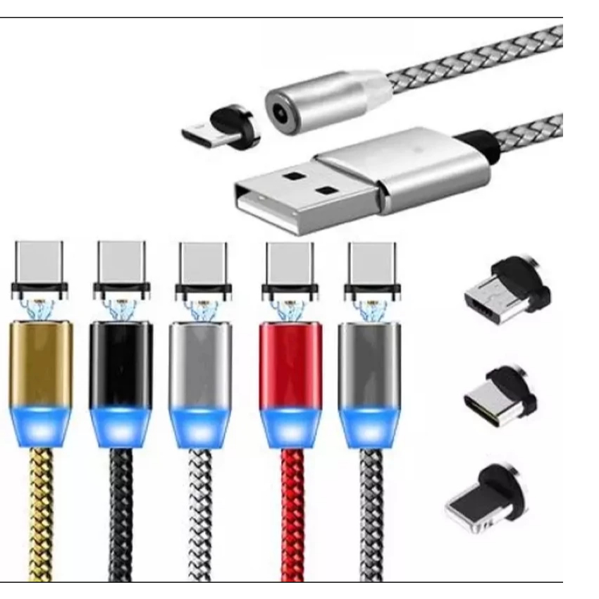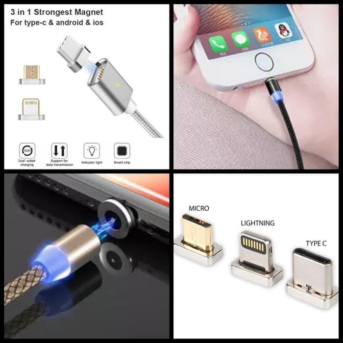 Kabel Data Magnetic LED X Cabel Charger Magnetik 3in1 Micro Type C Lightning 3A Kabel Data Casan