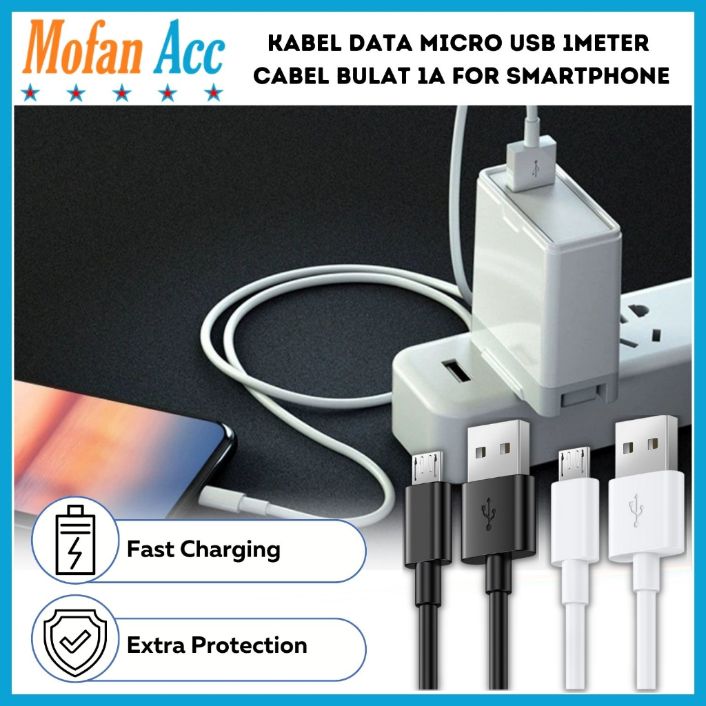 Kabel Data Micro USB Putih Panjang 1 Meter || Cable Bulat 1m 100Cm 1A Smartphone Handphone Hp Mikro
