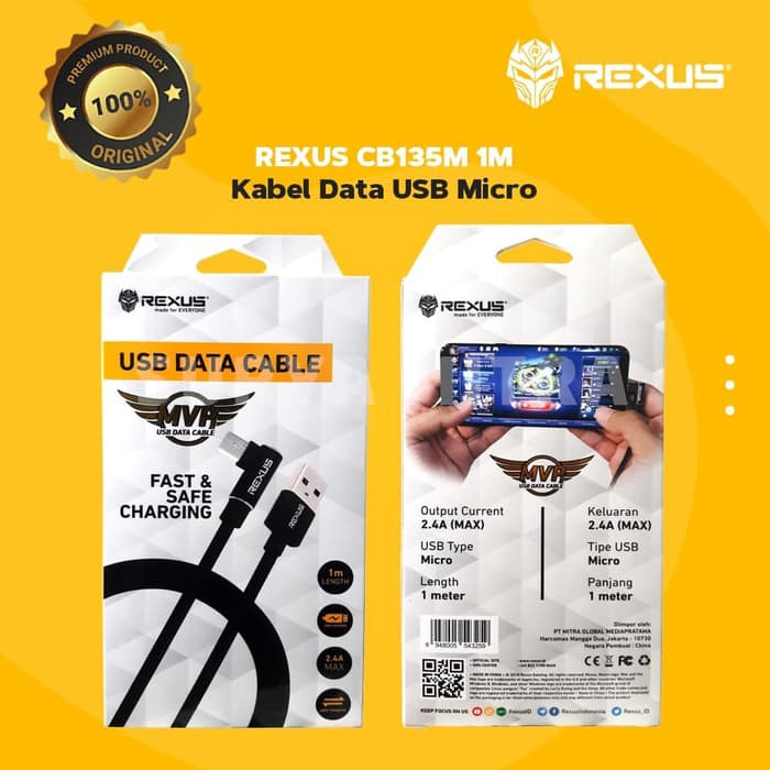 Kabel Data Micro Usb Rexus CB135M 1M Fast Charging 2.4A CB-135M