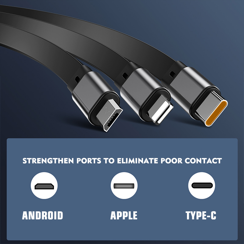 Kabel Data Pengisi Daya USB Tipe C Kabel Micro 3 In 1 M300 pengisian mecepat 6A 100W Micro + TypeC + for iphone 120cmndukung pengisian cepat Braided Type C Cable for Smartphones Tablets Laptops other Type C devices