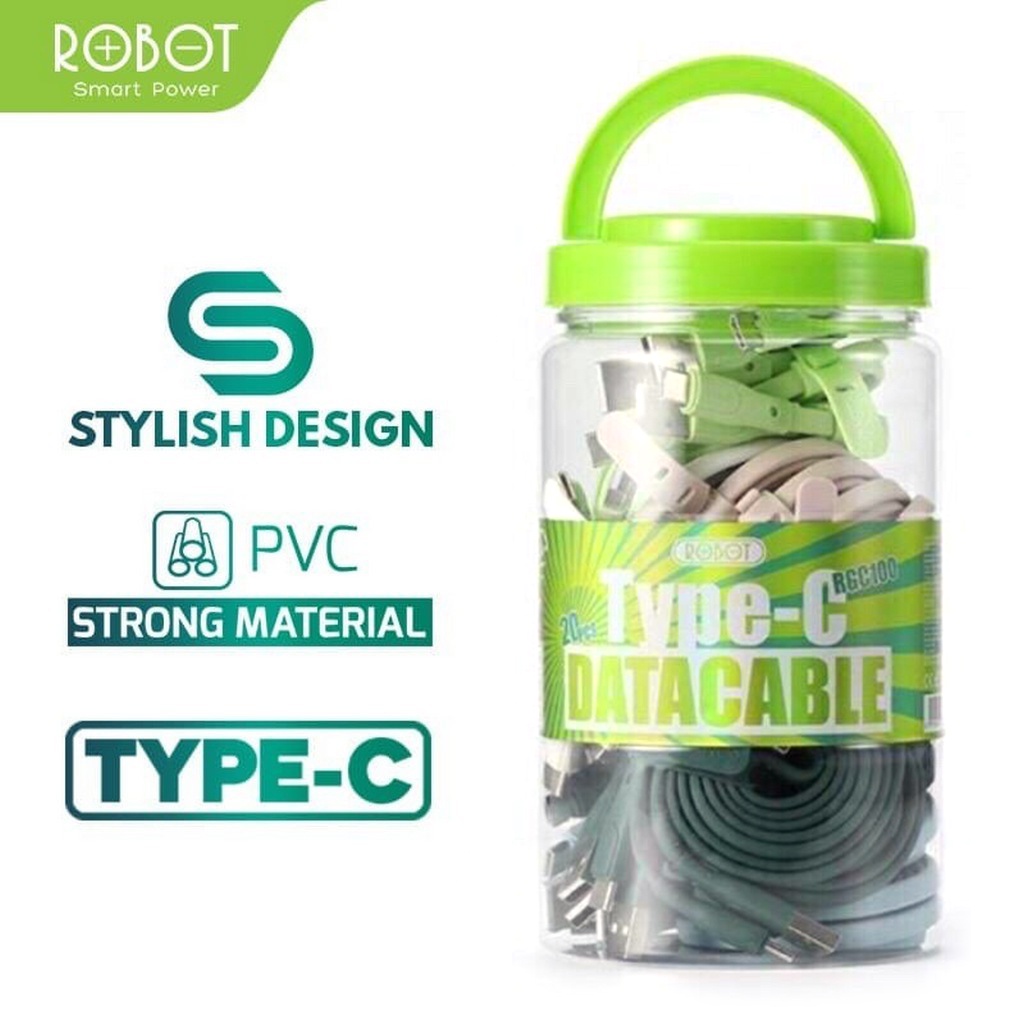 Kabel Data ROBOT RGC100 Android iOS Type-C 1M 100cm Data Cable