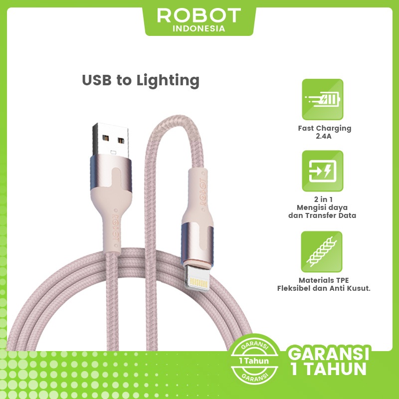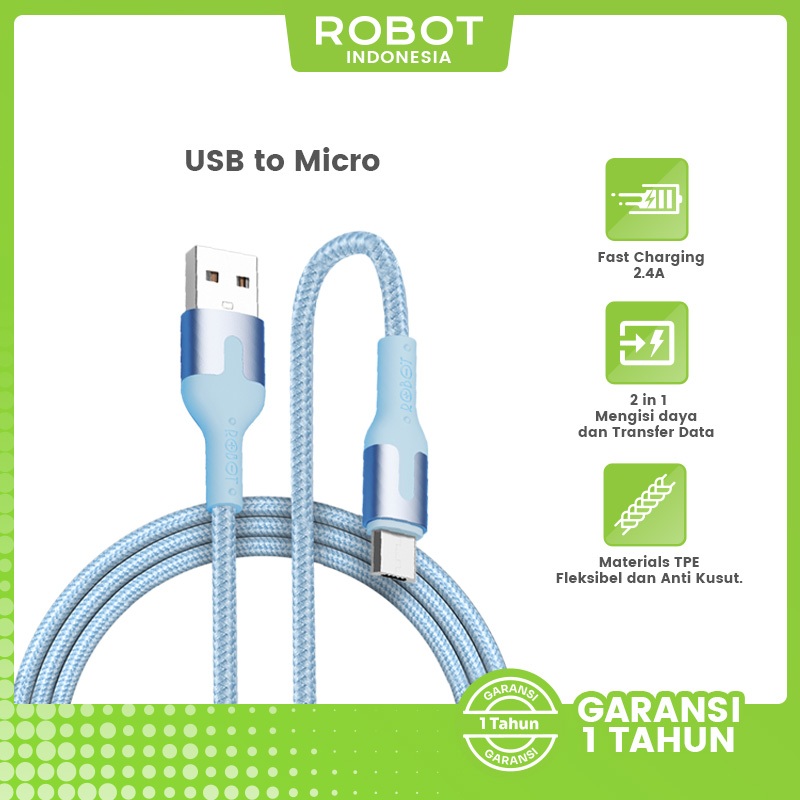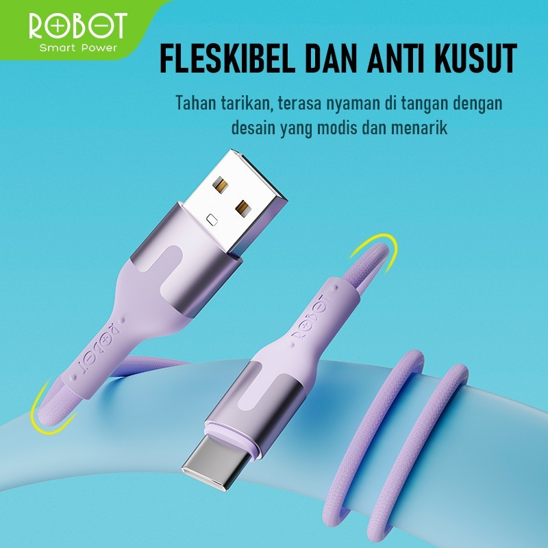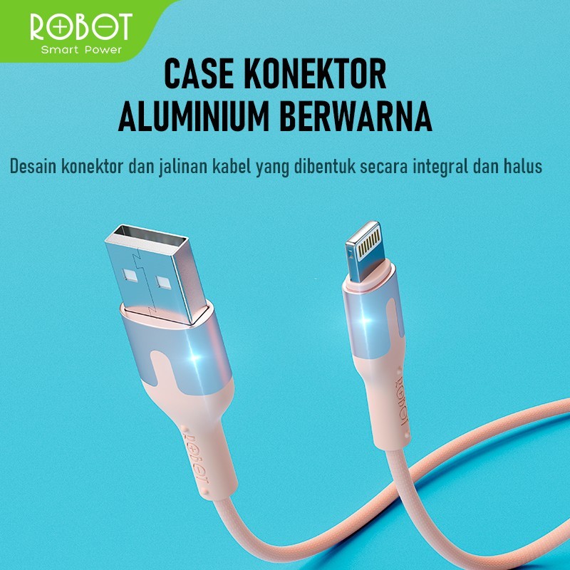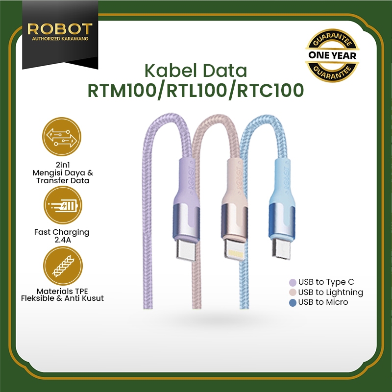 Kabel Data ROBOT Type C Micro USB Lighting Kabel 1 Meter 2.4A Data Cable TPE Anti Kusut Kabel RTM/RTL100/RTC Series Original