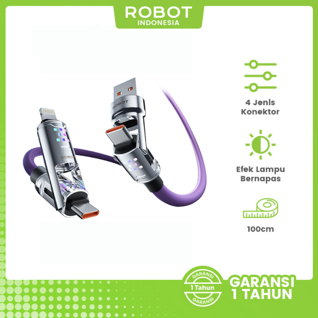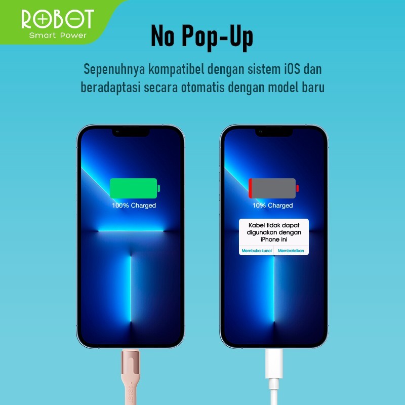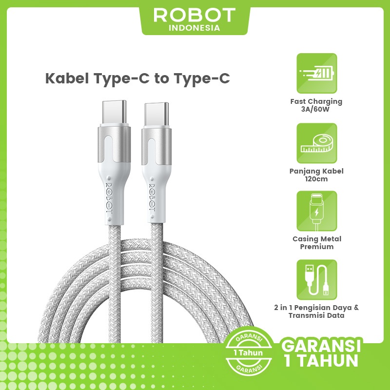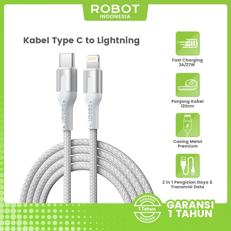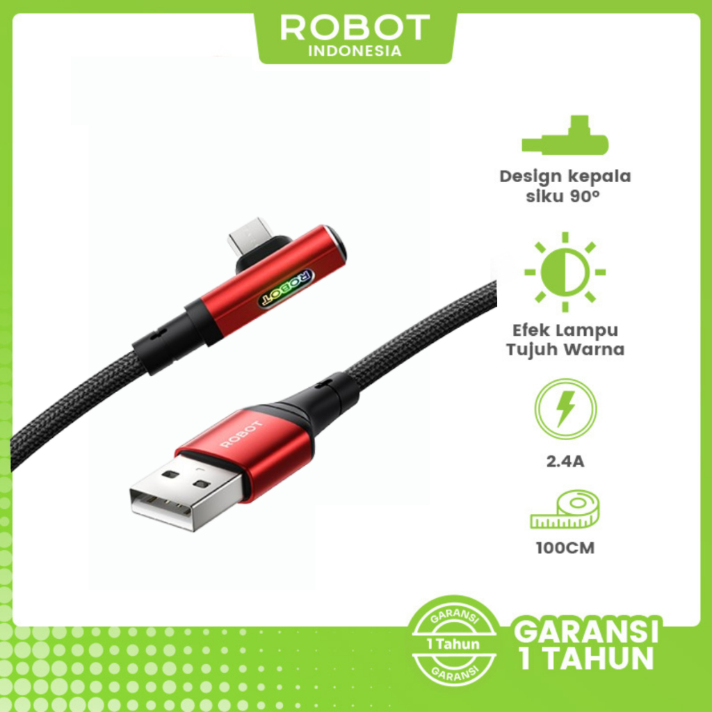 Kabel Data ROBOT Type C Micro USB Lighting Kabel 1 Meter 2.4A Data Cable TPE Anti Kusut Kabel RTM/RTL100/RTC Series Original