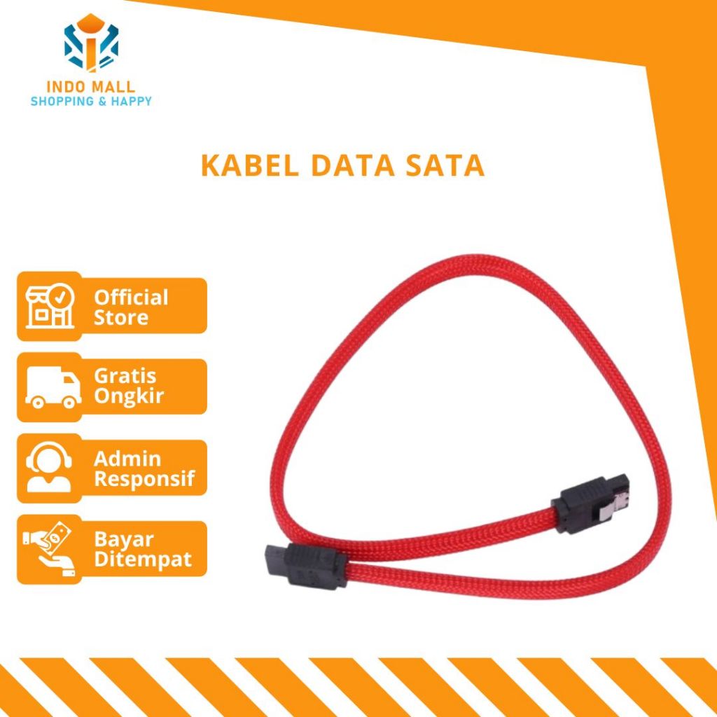 Kabel Data SATA / kabel SATA Hardisk, HDD, DVD Rom, Cable jepit original (Flat Cable)-MERAH Indomall