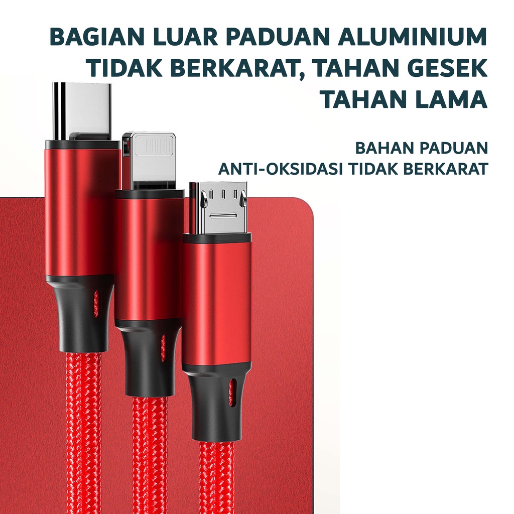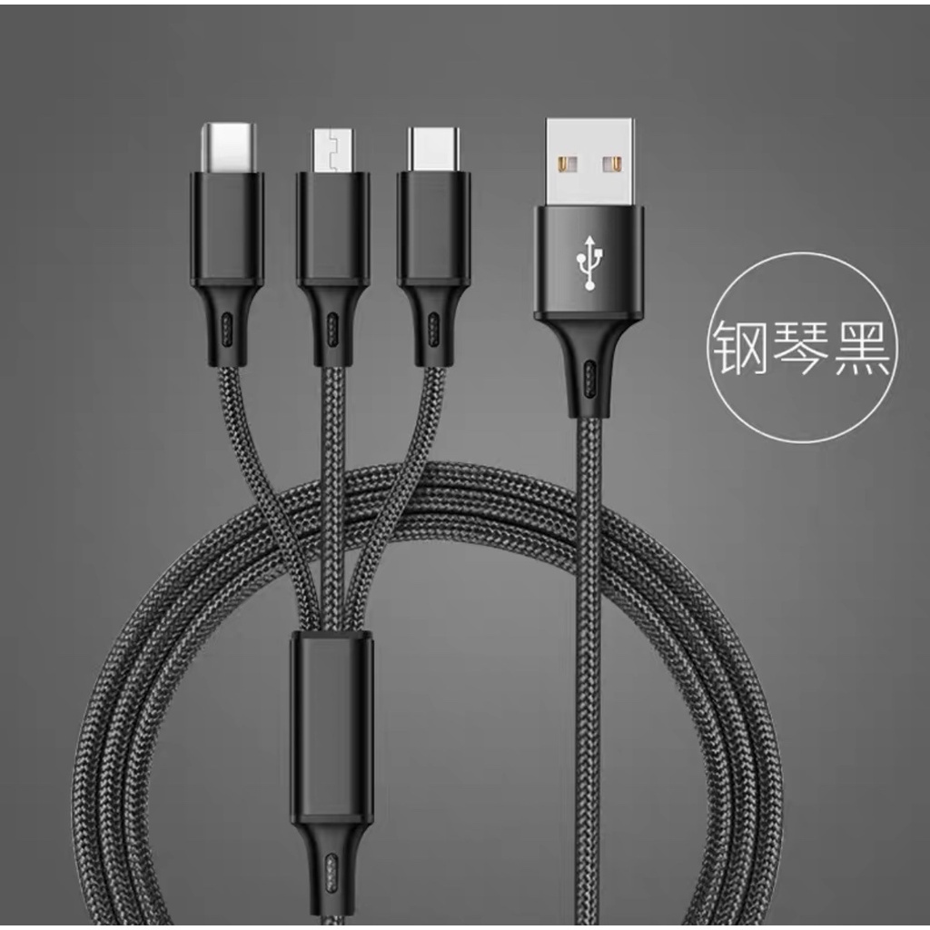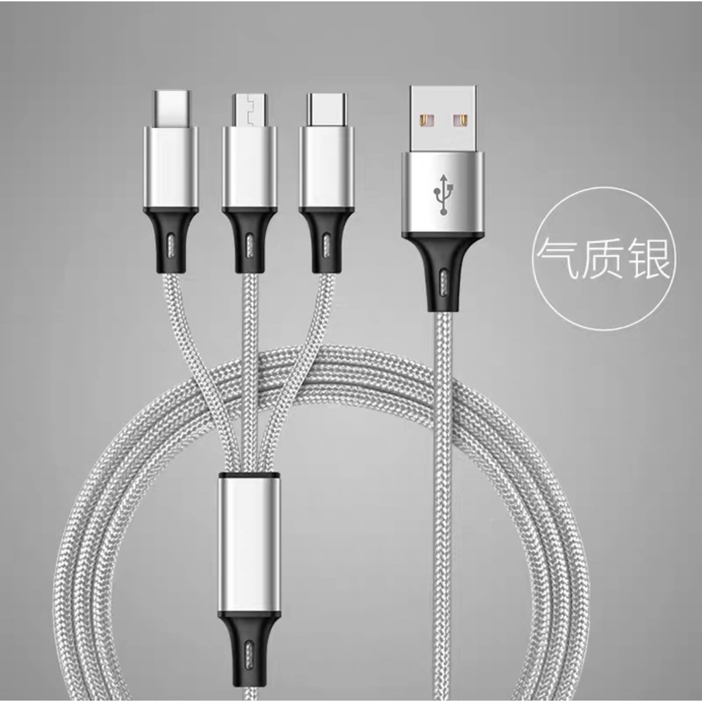 Kabel Data Type C Micro 2A Fast Charger Kabel Data Charge Cable 3 in 1 Nilon Glowy