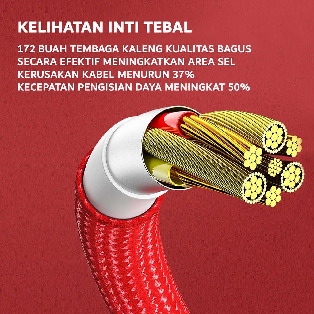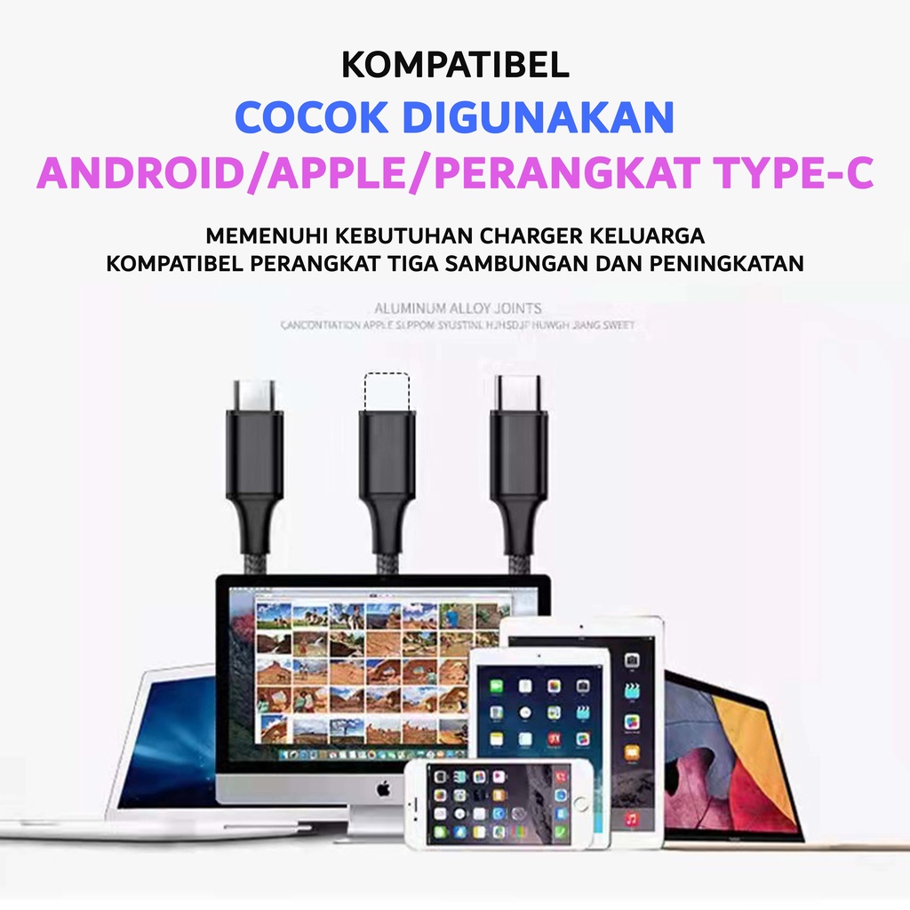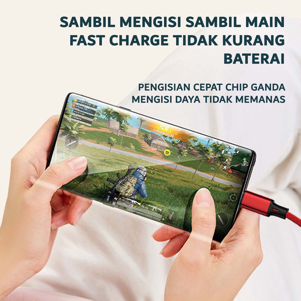 Kabel Data Type C Micro 2A Fast Charger Kabel Data Charge Cable 3 in 1 Nilon Glowy