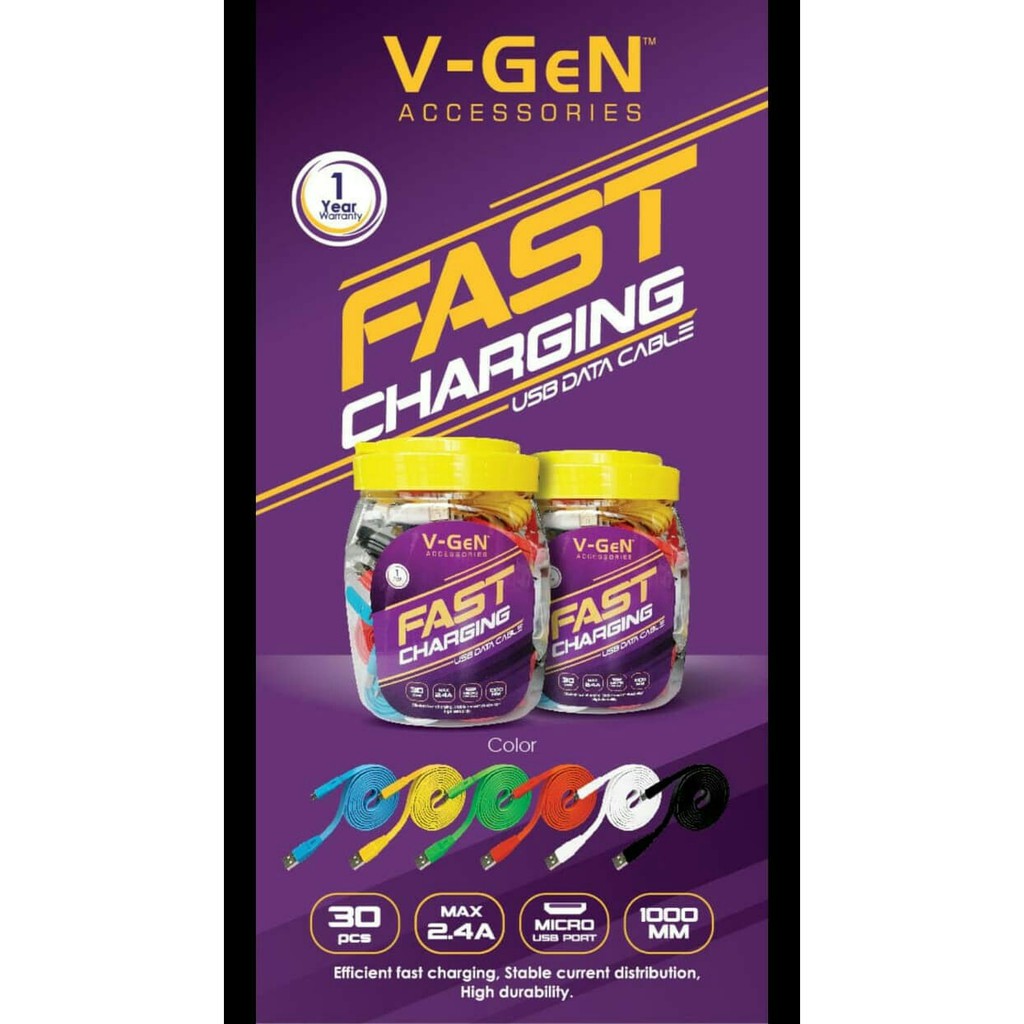 Kabel Data USB Toples(isi 30pcs) 1 Meter Fast Charging V-gen