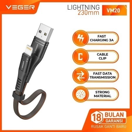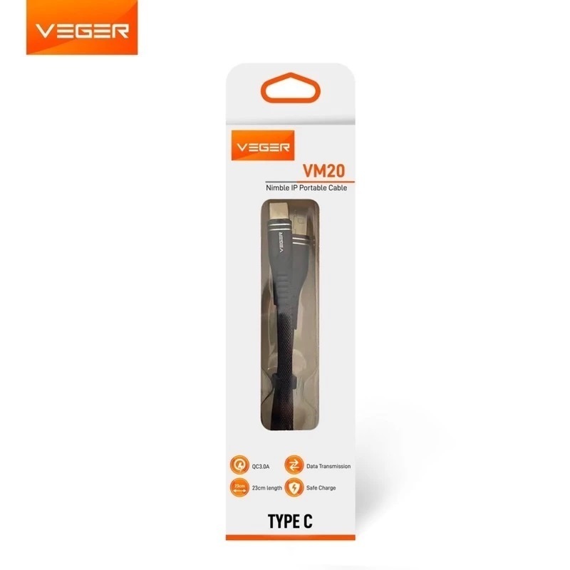 Kabel Data VEGER VM20 MICRO / TYPE C / LIGHTNING USB 23cm 3A / Kabel Data Powerbank Original