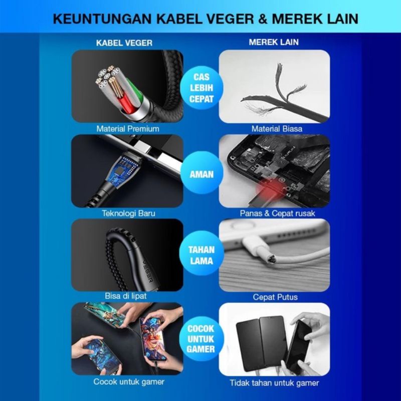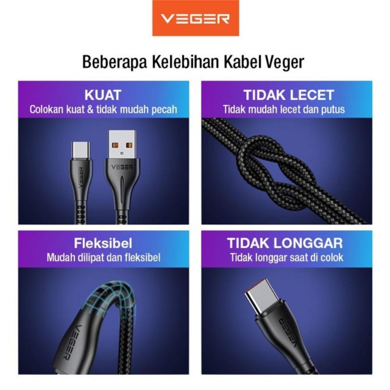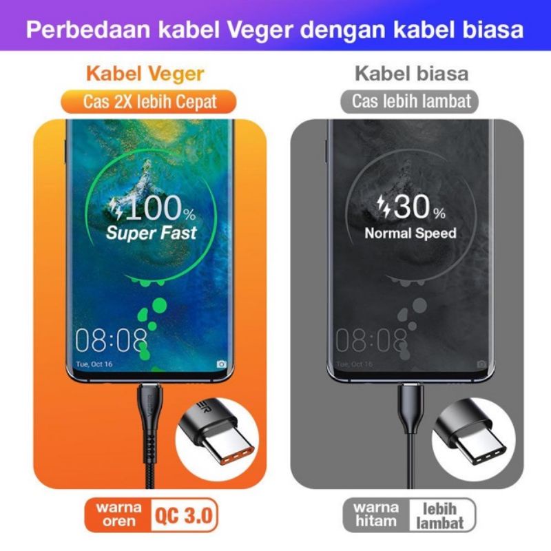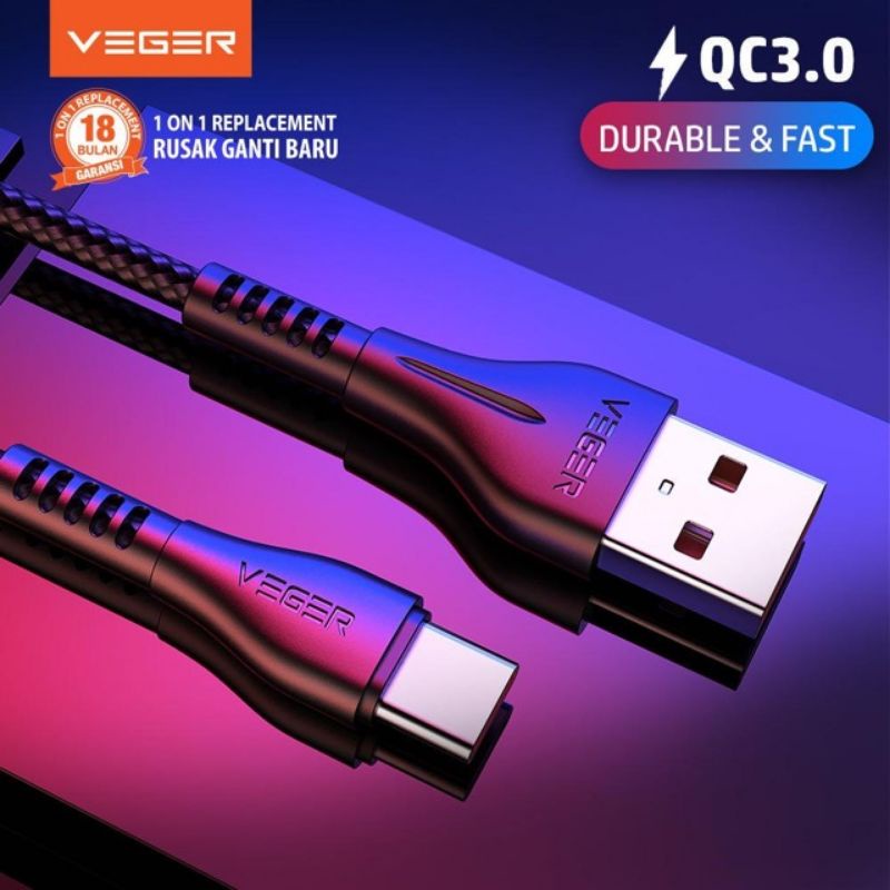 Kabel Data Veger UFO USB Micro / Type-C QC 3.0 100Cm Fast Charging Original