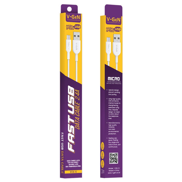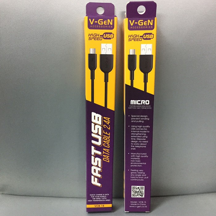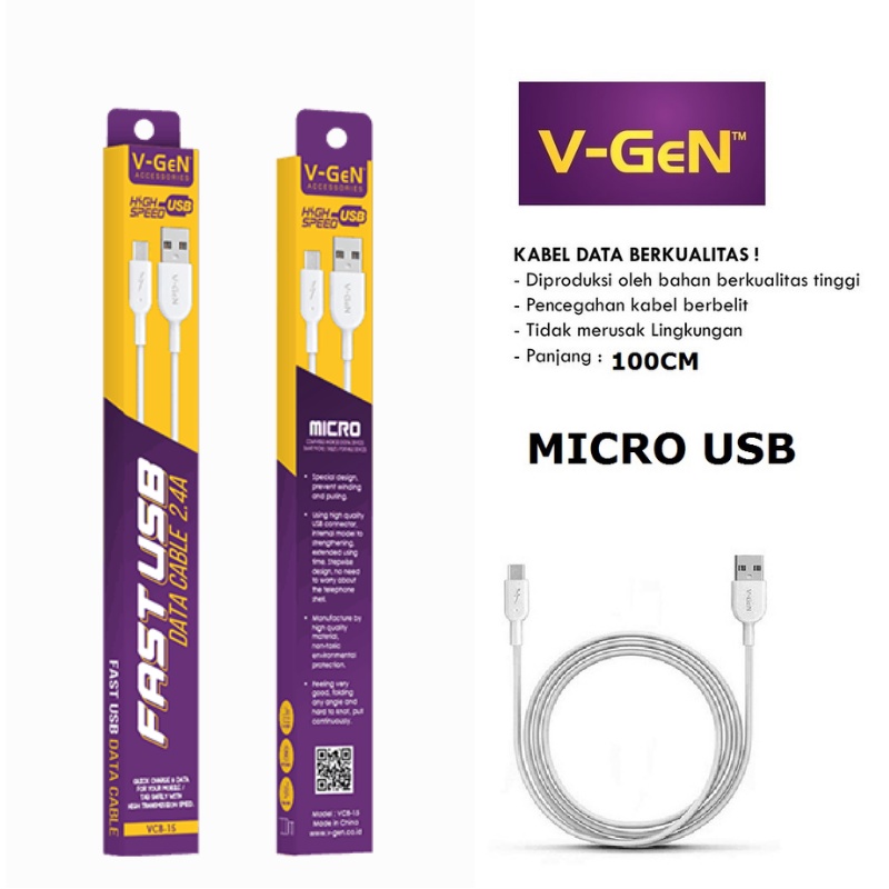 Kabel Data Vgen VCB-15 Micro USB 1M 2.4A V-Gen Fast Charging Original VCB15 100CM 1 METER