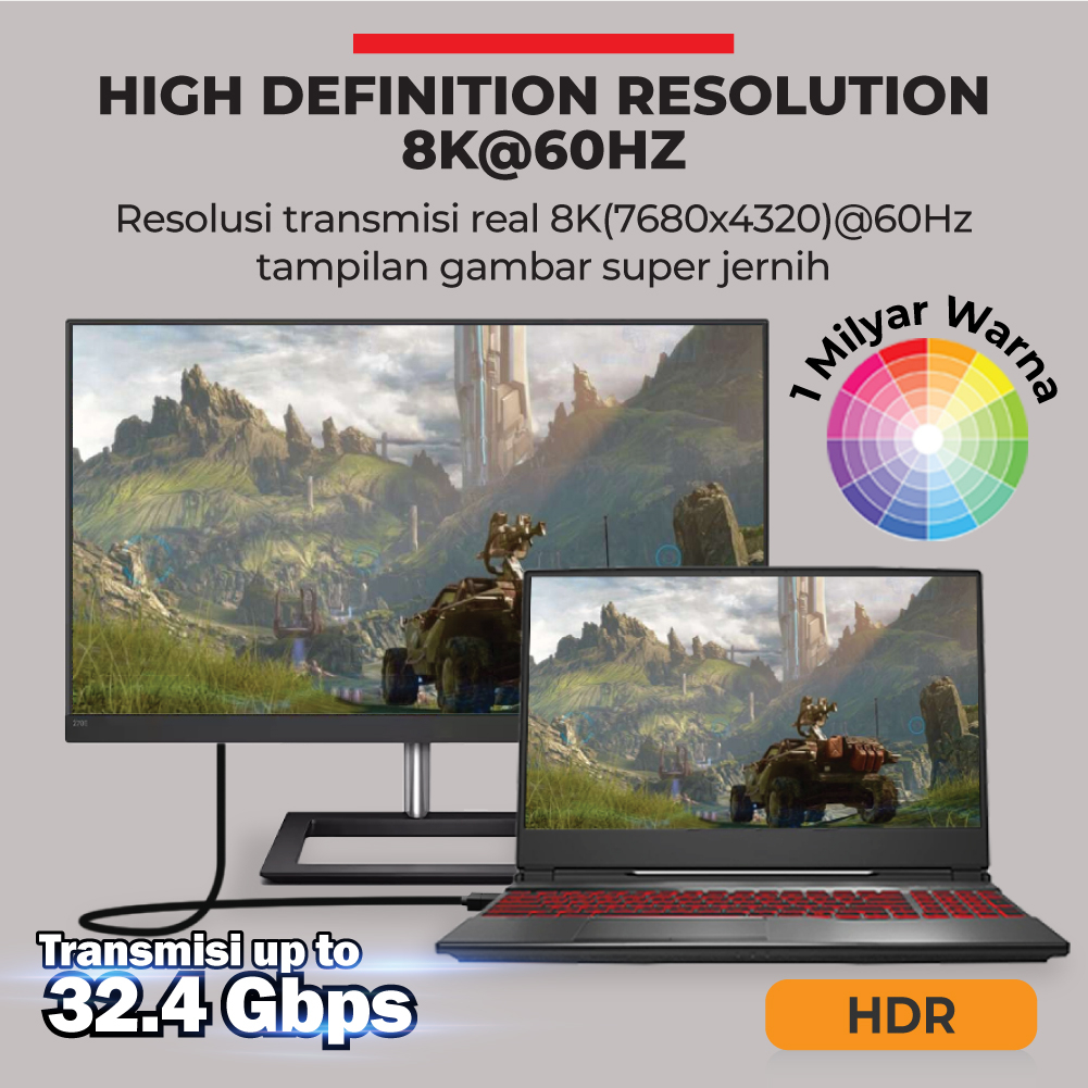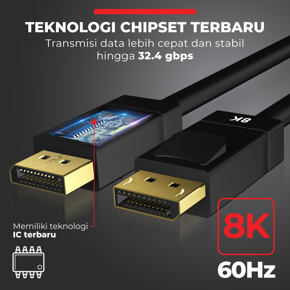 Kabel Display Port Male to Male Laptop Monitor DP 8K 1 Meter PX DP-1MM