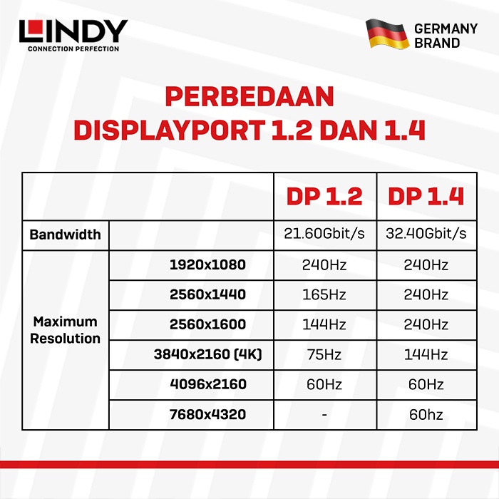 Kabel DisplayPort 1.4 LINDY 3m DP 1.4 Certified 32.4Gbps 8K Cable Male to Male No Pin 20 36293