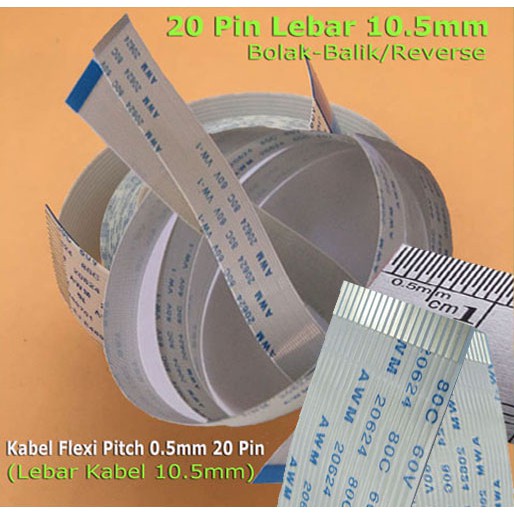 Kabel Flexible FFC FPC Pitch 0.5mm (Lebar 10.5mm) 20 Pin Bolak-Balik/Reverse
