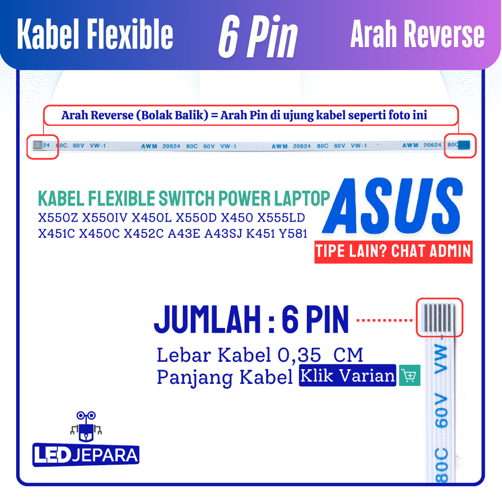 Kabel Flexible Switch On Off Power Laptop ASUS Kabel Fleksibel 6 Pin Arah Bolak Balik Reverse Laptop Asus x550dp x555ze x550z x550iv x550jx x450l x550d x450 x555ld X451C X450C X450CP X452C A43E A43SJ K451