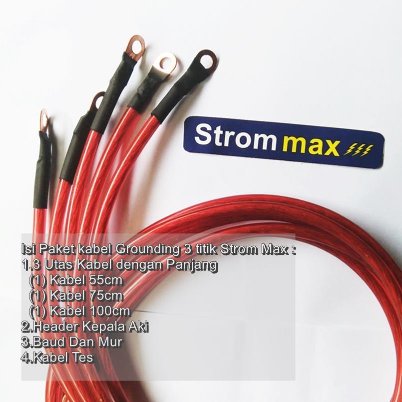Kabel Grounding Strom Max 8 AWG Full Tembaga untuk mobil 5 Titik Grounding Merah