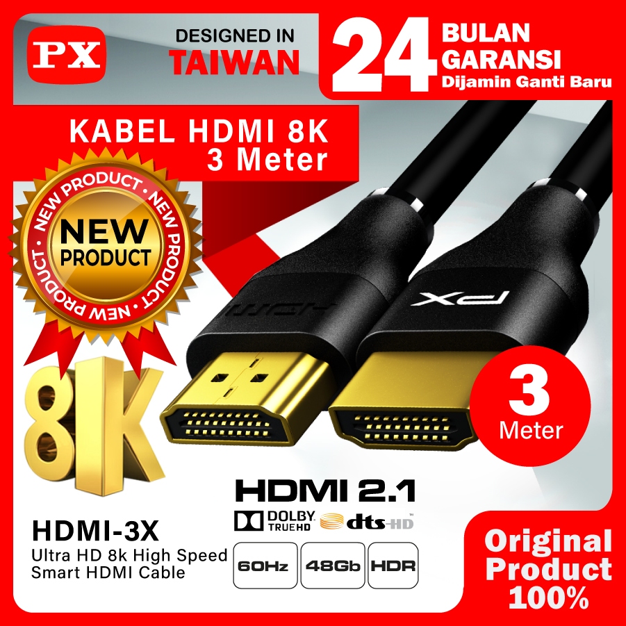 Kabel HDMI 2.1 High Speed UHD 8K HDR HDMI Cable 3M PX HDMI-3X