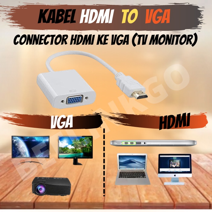 Kabel HDMI TO VGA Adapter Cable converter HDMI Audio Non-Audio Full HD 1080p Solusi ke Layar Monitor TV LCD LED Proyektor