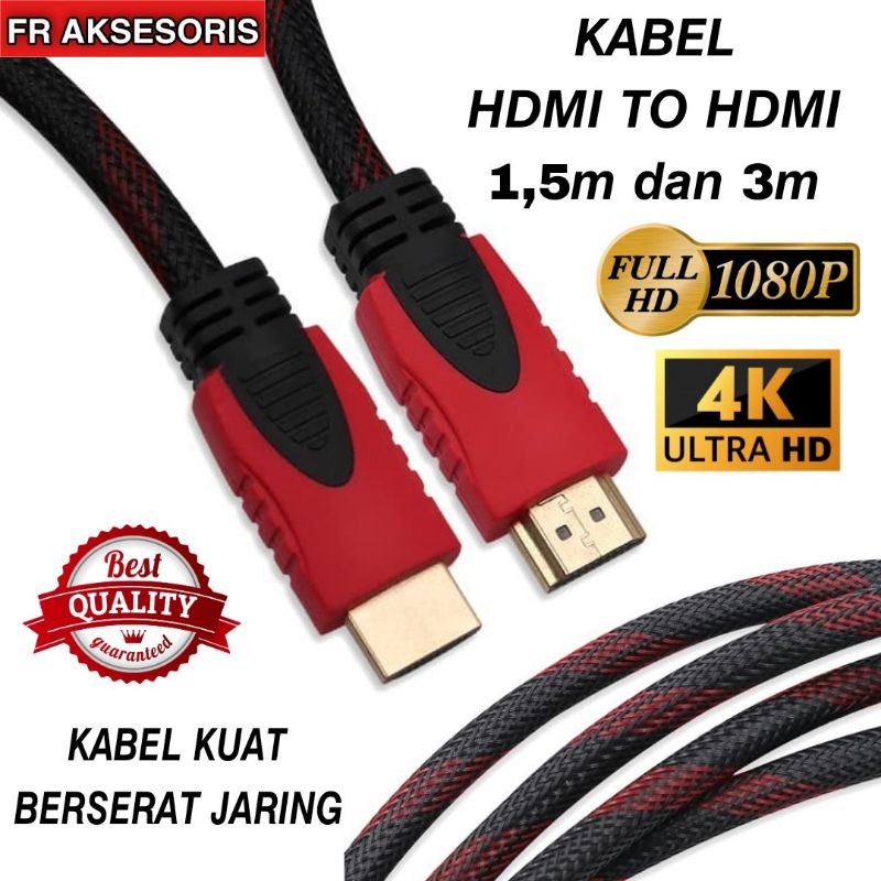 Kabel HDMI To HDMI 3m / 1.5m SERAT JARING KABEL HDMI 1.5m / 3m FULL HD 4K
