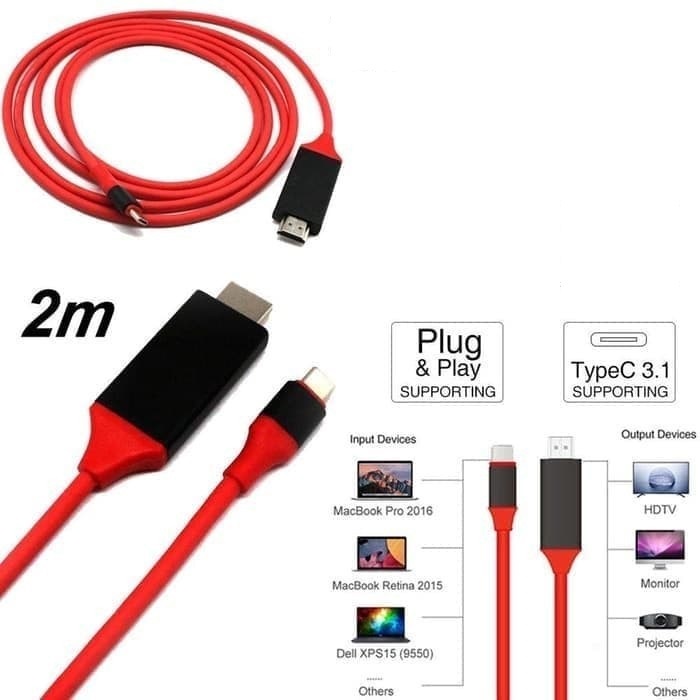 Kabel HDTV USB Type C to Port Male/ Cable 2 Meter 4K Mirroring TV / Converter Video for Smartphone