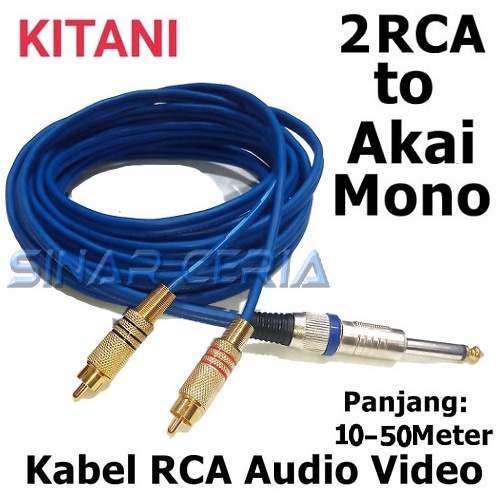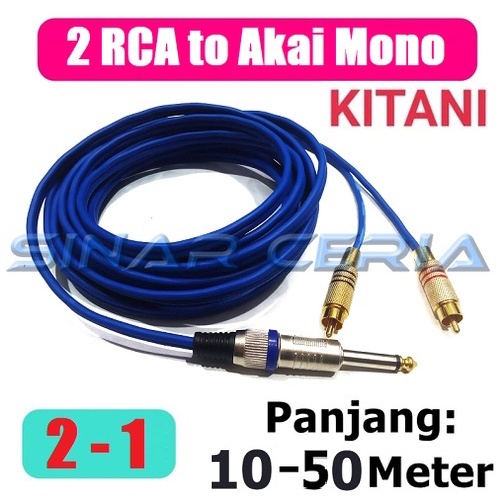 Kabel Jack Akai Mono 6.5mm to 2 RCA Cable Audio 2 to 1 2RCA Gold KITANI Mic Microphone Audio Box RCA Panjang 10 - 50 Meter