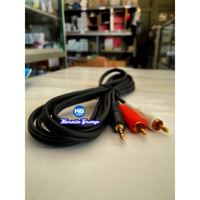 Kabel Jack Audio To 2 Rca 2-1 HITAM High Kualitas Cabel Audio Aux 21 Kabel Colokan Jek Speaker to Hp 2in1 kbl Tebal Termurah Berkualitas Kable Hape ke Salon Aktif Panjang 1,5 Meter Colokan handphone Ke Spiker by Kurnia Group Brebes