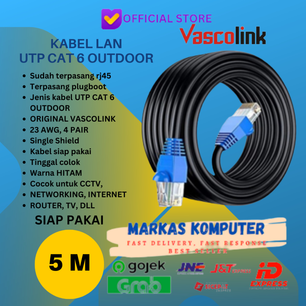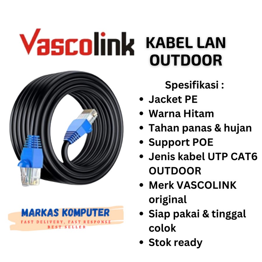 Kabel LAN OUTDOOR VASCOLINK UTP CAT6 CAT 6 Siap Pakai HITAM 5M - 50M