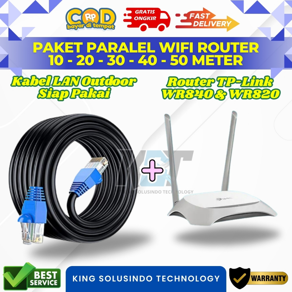Kabel LAN Outdoor 50 Meter FTP + Router WiFi TP-Link WR840N | Paket Paralel WiFi Indihome CBN ISP