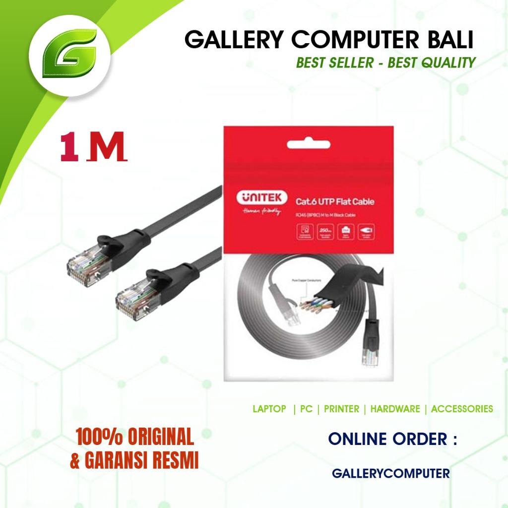 Kabel Lan Cat 6 1M UNITEK UTP Flat RJ45 / Kabel Lan 1 Meter