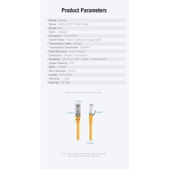 Kabel Lan Vention IBH 25M Cat6a Cat6 Ethernet RJ45 Gigabit SSTP SFTP