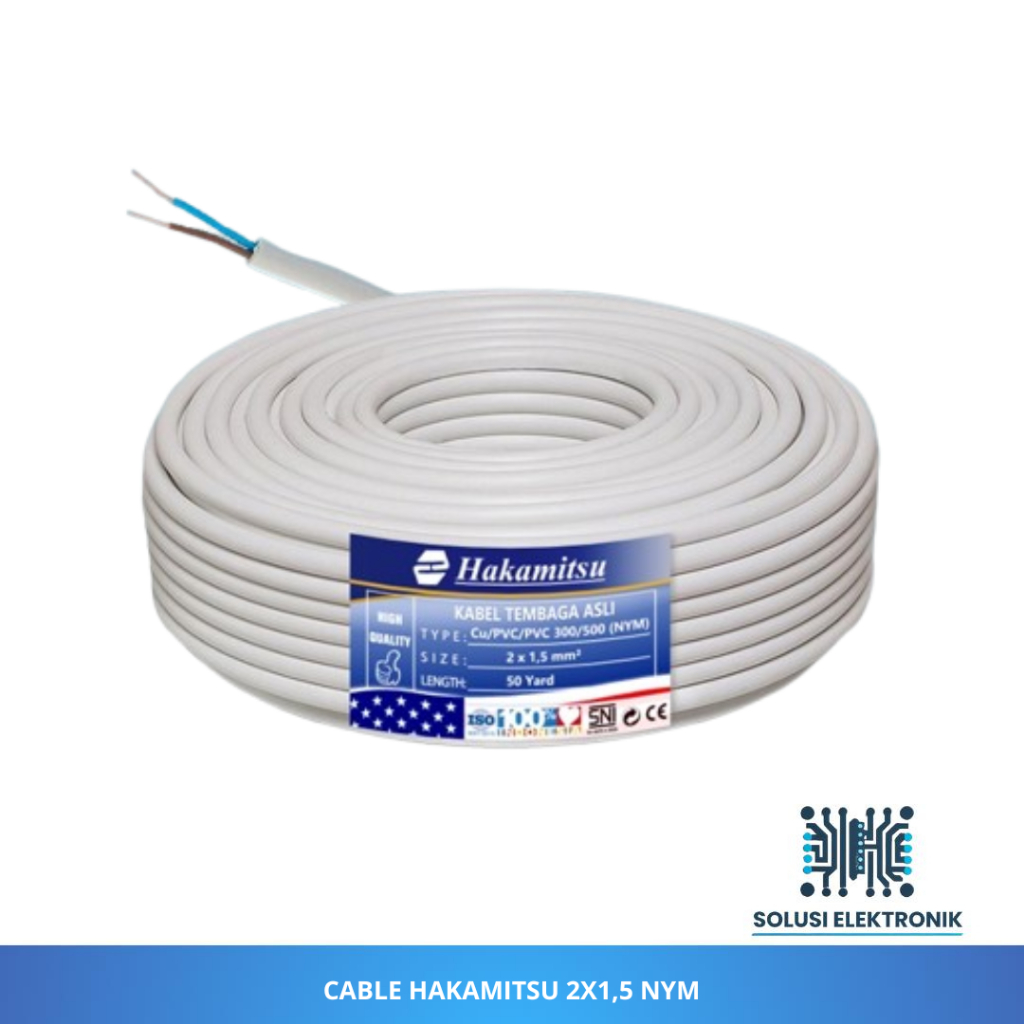 Kabel Listrik Hakamitsu 2x1,5 NYM Putih 1 Roll SNI Full Tembaga Original