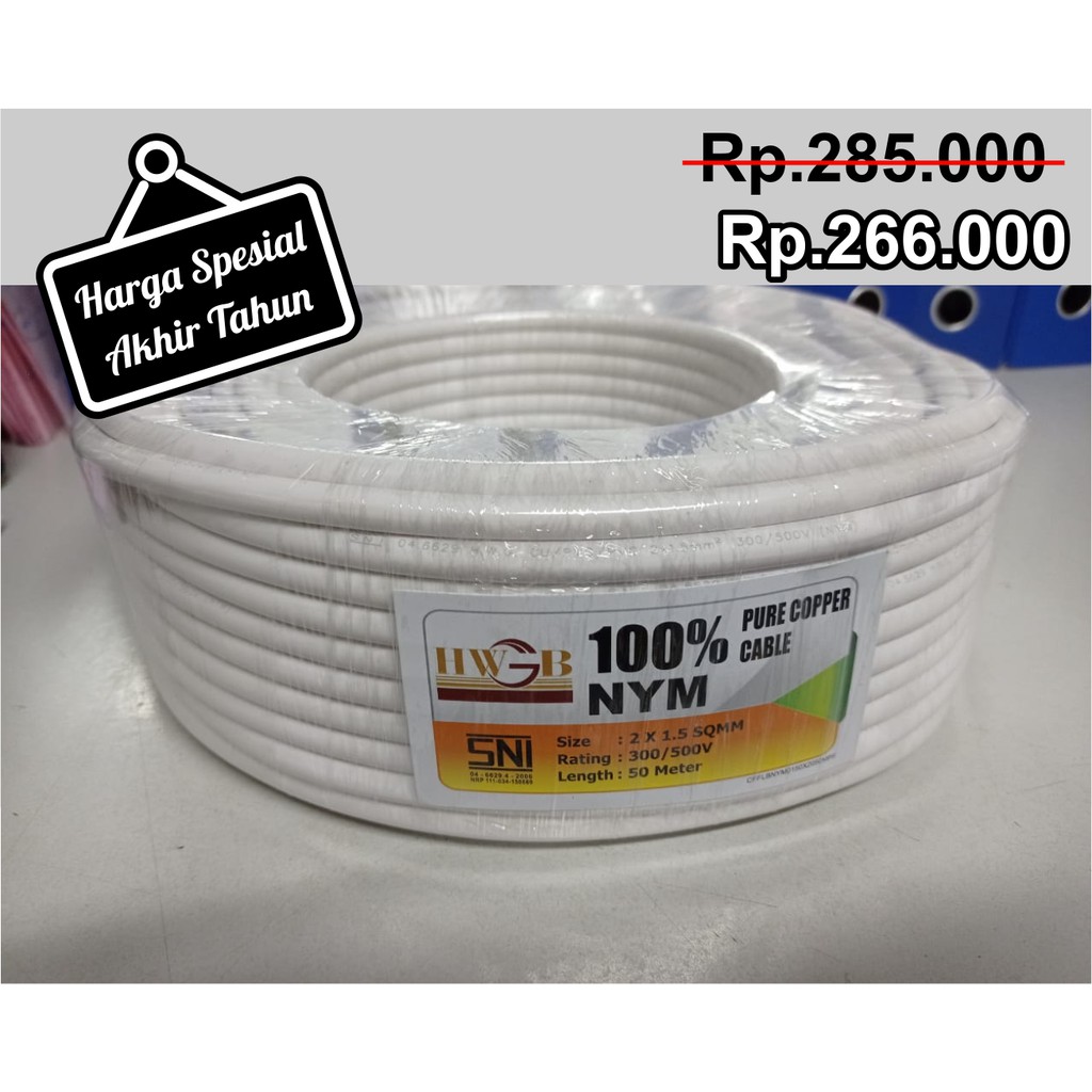 Kabel Listrik NYM 2 X 1,5 mm Putih Merek HWGB ( Panjang 50 meter )