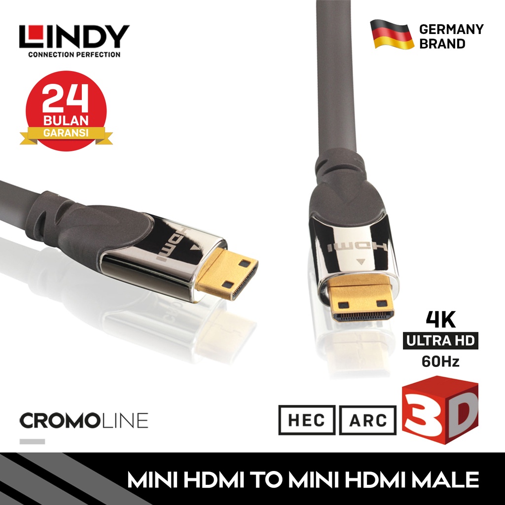 Kabel Mini HDMI 2.0 LINDY 1m 2m Mini HDMI to Mini HDMI with Ethernet 4K Cable 10.2Gbps Triple Shielded 41451 41452