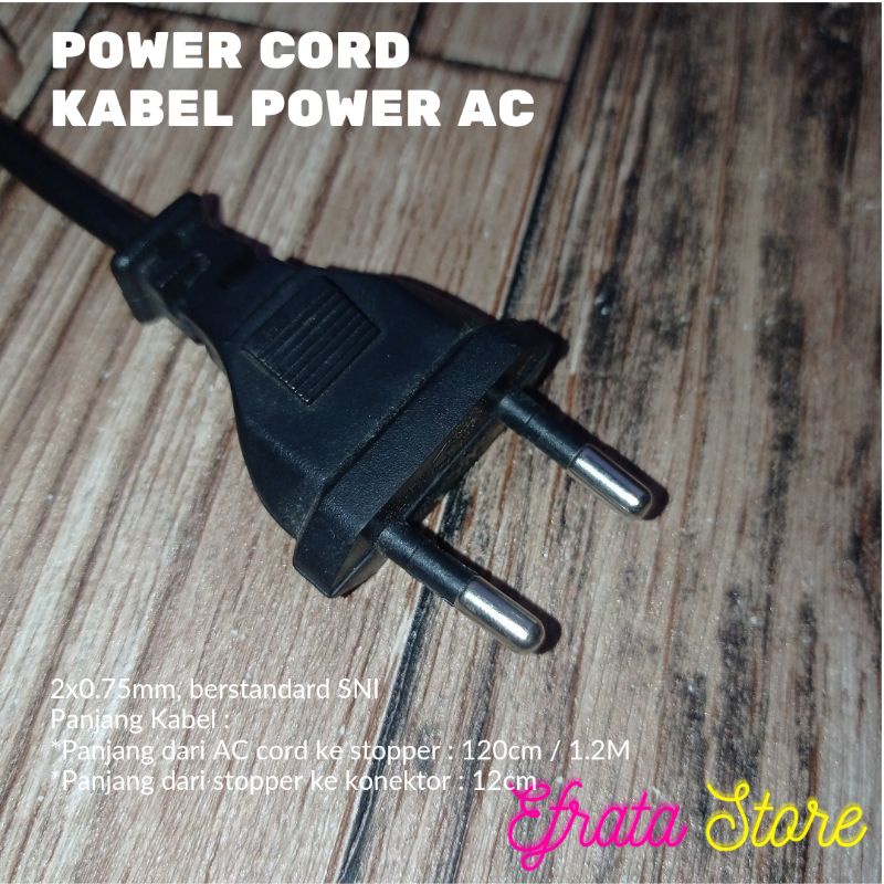 Kabel Power AC 1.2M 2x0.75mm SNI untuk TV Monitor Audio Video Elektronik Listrik Power Cord