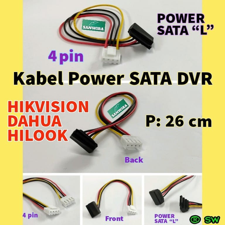 Kabel Power L SATA DVR NVR Hikvision Dahua Hilook / SATA "L" NVR DVR / Kabel Sata DVR NVR HIKVISION Dahua Hi-Look / Cable Power SATA "L" DVR NVR 26cm