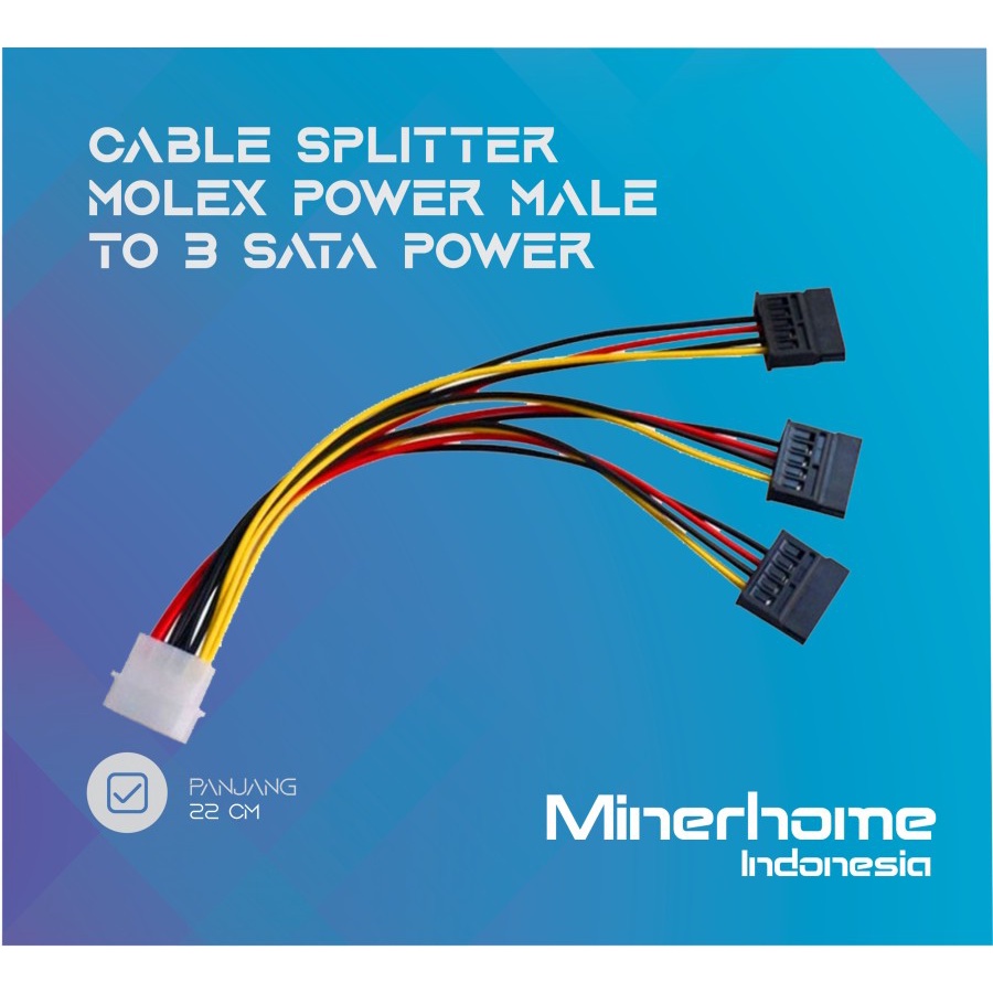 Kabel Power Molex IDE 4pin Male To 3 Triple Sata Power 15pin Female