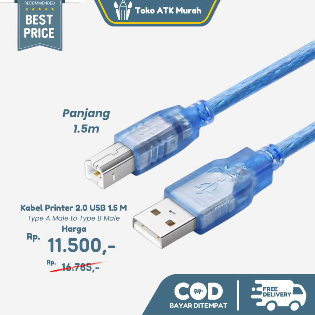 Kabel Printer 2.0 USB 1.5 M Type A Male to Type B Male Cable Connector