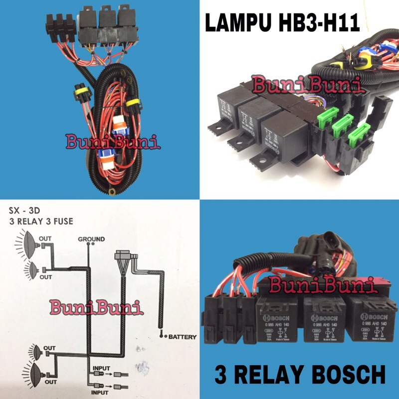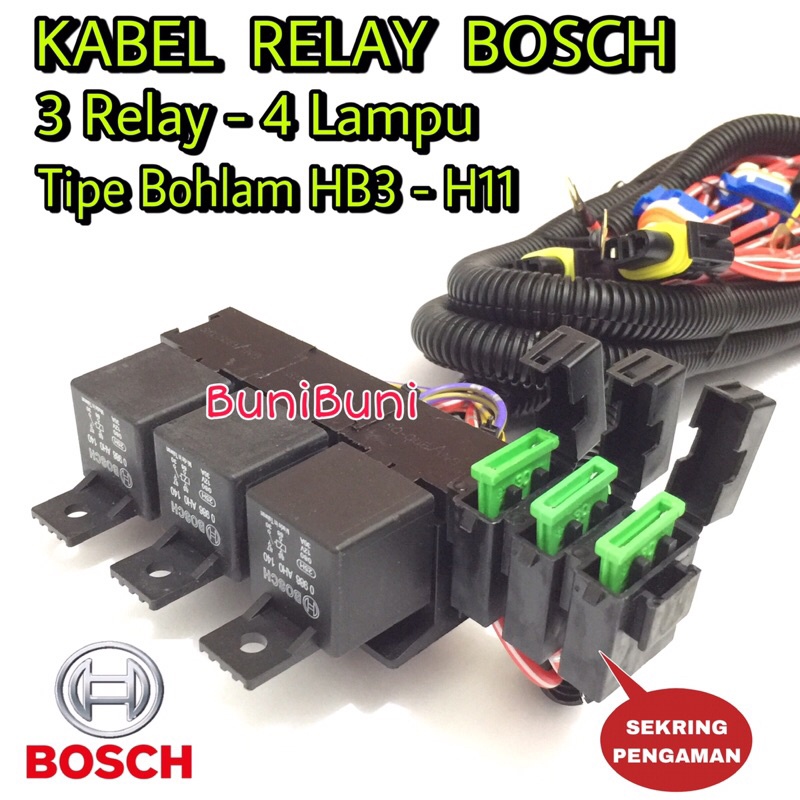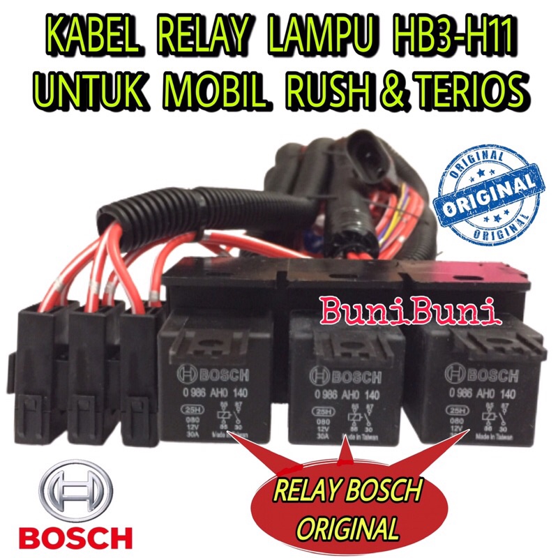 Kabel Relay BOSCH Komplit Untuk Lampu Mobil RUSH & TERIOS - 3 Relay 4 Lampu - ORIGINAL