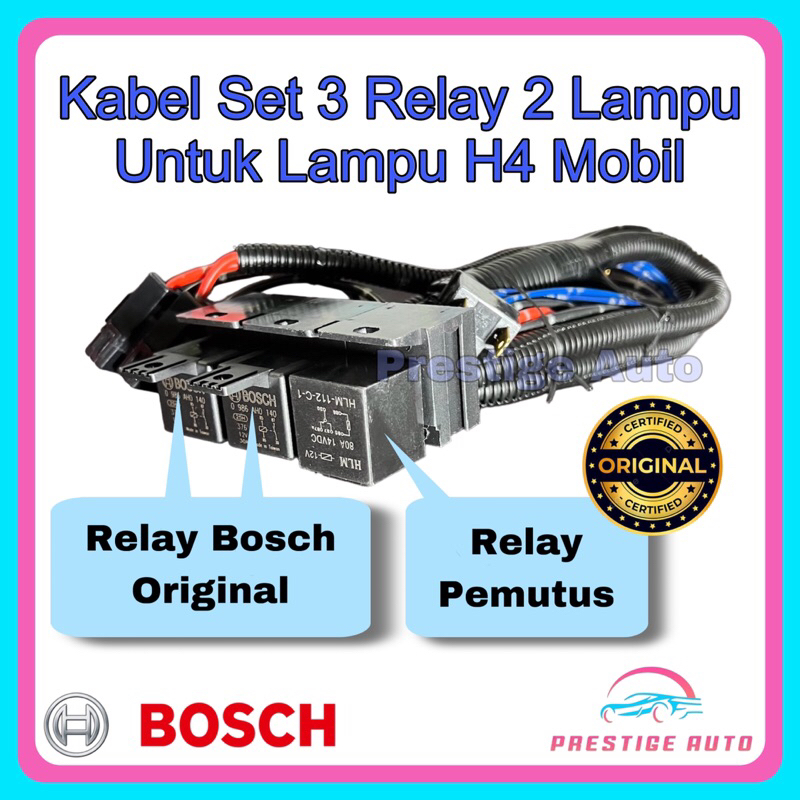 Kabel Relay BOSCH ORIGINAL 3 Relay 2 Lampu H4 Mobil Komplit - 100% Rilai Bosch Original