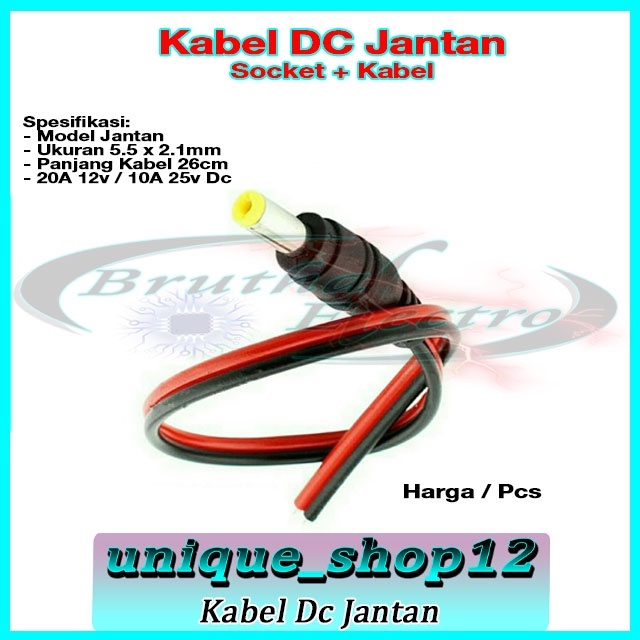 Kabel Socket DC Male/Jantan Plus Kabel Merah Hitam