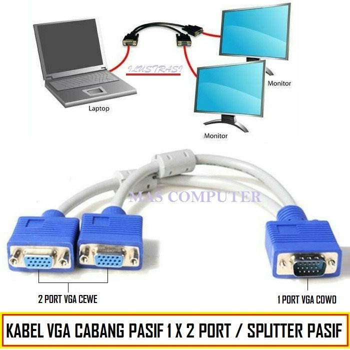 Kabel Splitter VGA 2 PORT / VGA Splitter 2Port 1 X 2 Layar / VGA PASIF / Splitter VGA 2Port KABEL CABANG / KABEL VGA CABANG
