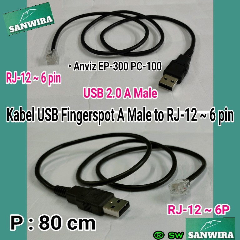 Kabel USB Fingerspot / Kabel USB Fingerspot 80 cm / Kabel USB Fingerspot Anviz EP-300 PC-100 / Fingerspot Anviz / Custom Kabel Fingerspot / Kabel absensi fingerspot / Anviz / Kabel USB Fingerspot A Male to RJ-12 6 pin 80 cm / CB USB Fingerspot