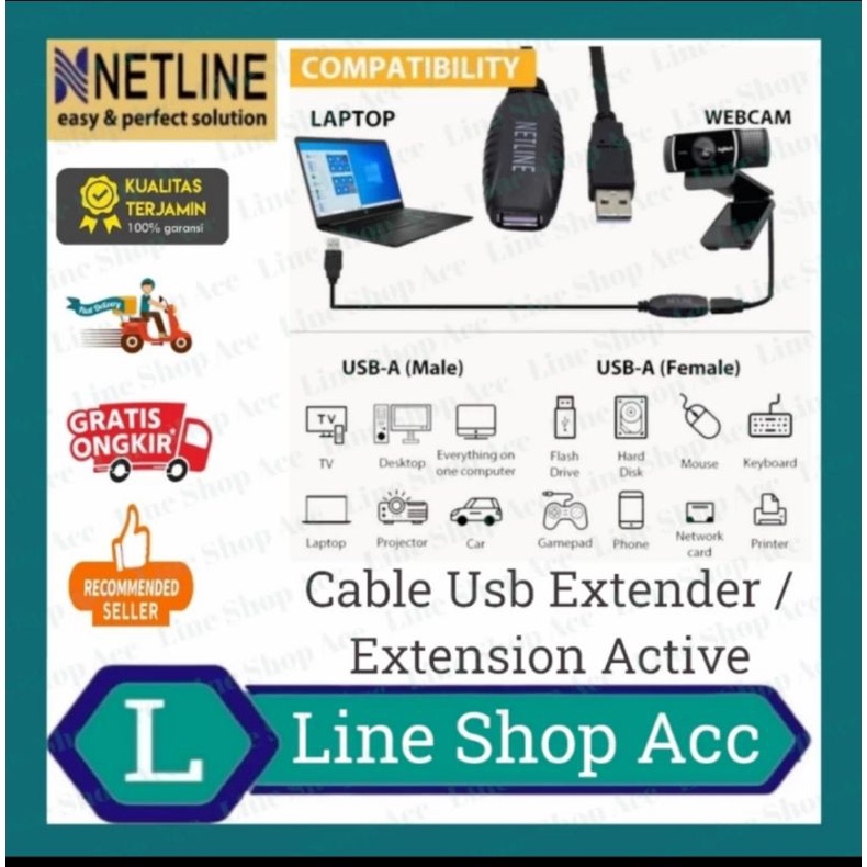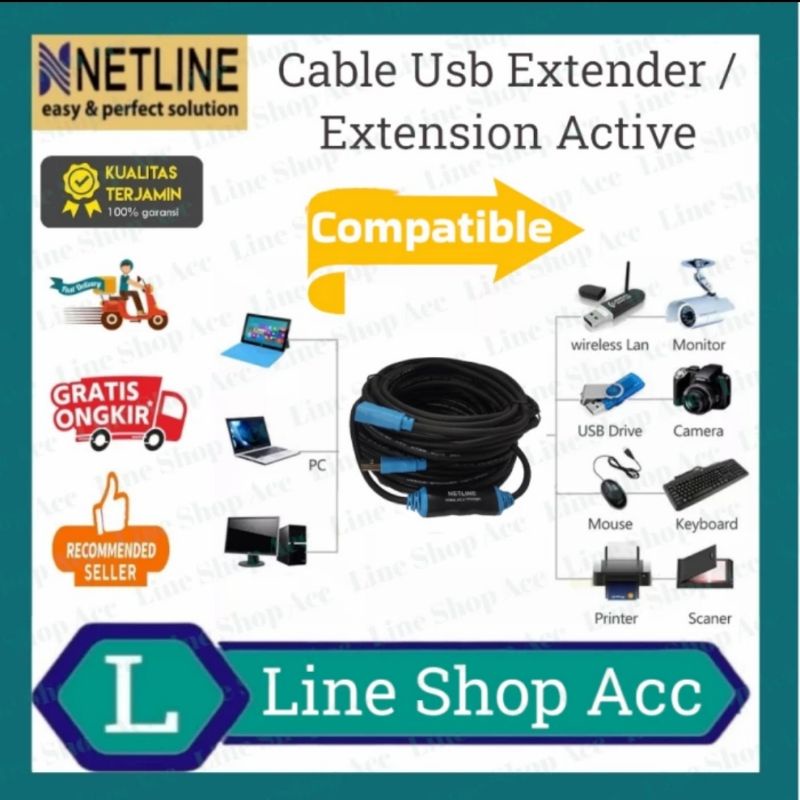Kabel Usb 2.0 Extension Aktif 30 Meter Netline Cable Usb Extension Aktive / Usb Extender Active